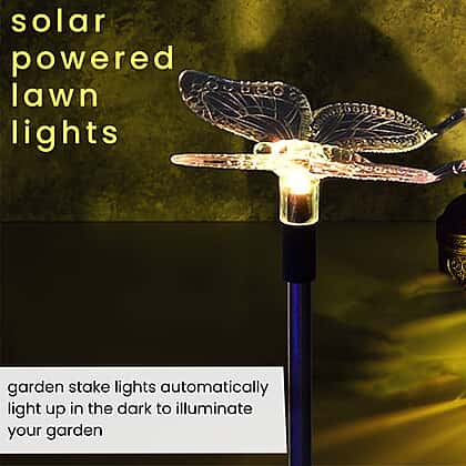 - Crafted from high-quality plastic and stainless steel, the 6-pack solar garden lights with vivid clear figurines of butterflies, hummingbirds and dragonflies