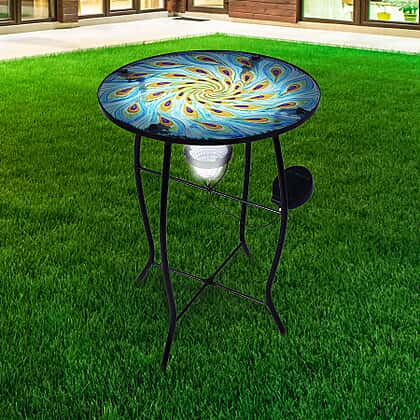 Peacock Feather Pattern Garden Table with Solar Light in Multi (Size 30.5x30.5x48cm)