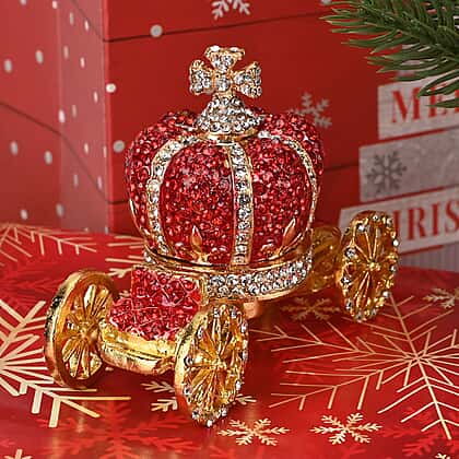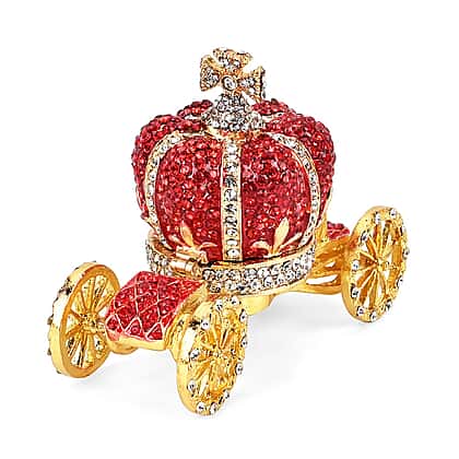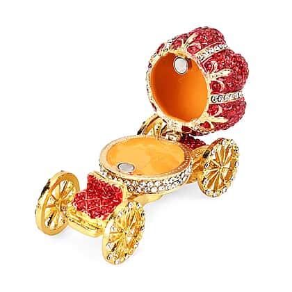 Pumpkin Cart Hand Painted Trinket Storage Box Enamelled With Sparkling Crystals - Blue & Gold