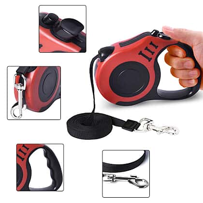 Retractable Dog Leash - Red (Rope Length 5m) (Size 10x3x23 cm)