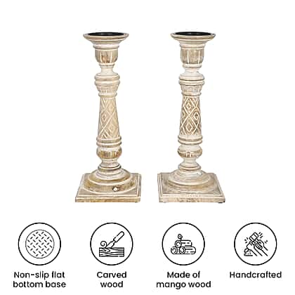 Set of 2 - Antique Carved wooden Candel Holders - White