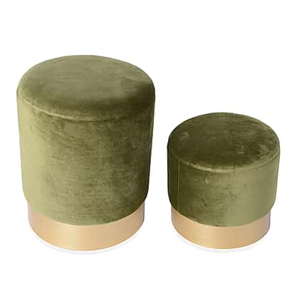 Set of 2 - Wooden Stool with Storage Box (Size L 35x35x44 Cm), (Size S 30x30x33) - Olive Green