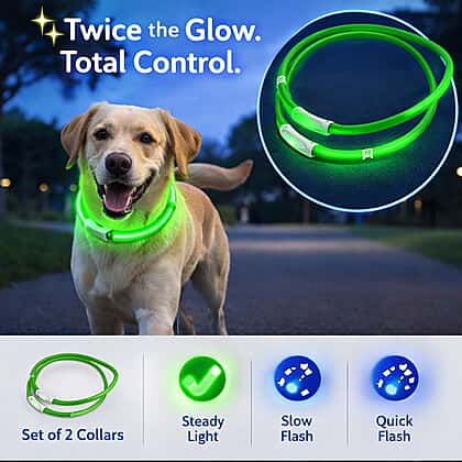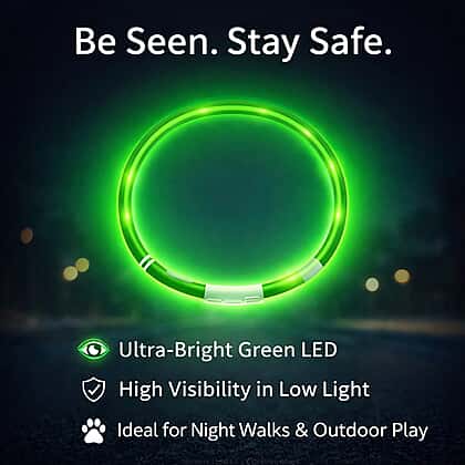Set of 2 LED Pet Glow Collars | USB Rechargeable LED Pet Collars for Night Walk - Green