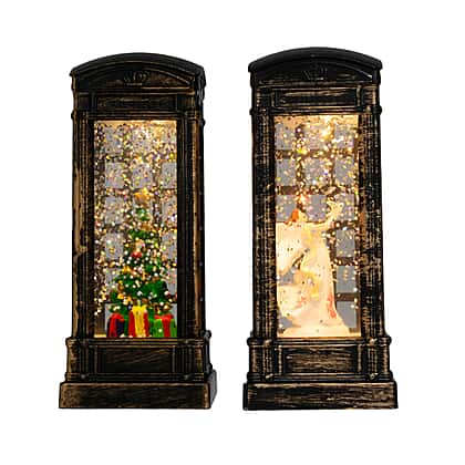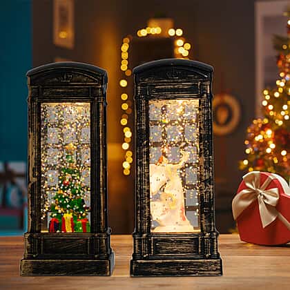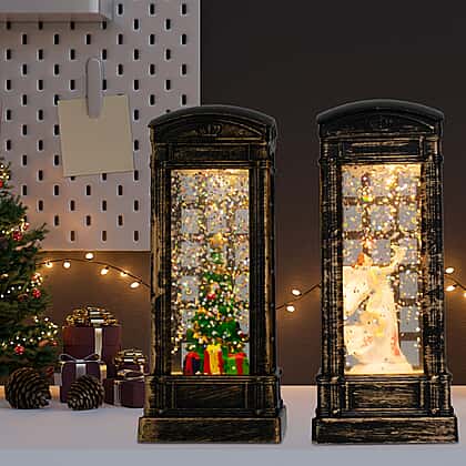 - Add festive charm to your home at Christmas with these fun 2 piece telephone boxes that include warm lighting and glittering snow