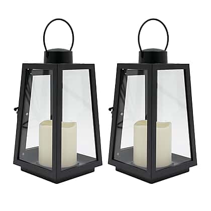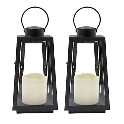 Set of 2 Metal Battery Powered LED Flameless Candle Lantern - Black