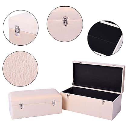 Set of 2 Off-White Velvet Fabric Covered Wooden Trunks