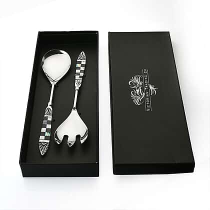 Set of 2 Salad Server with Black Gift Box - Silver