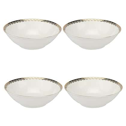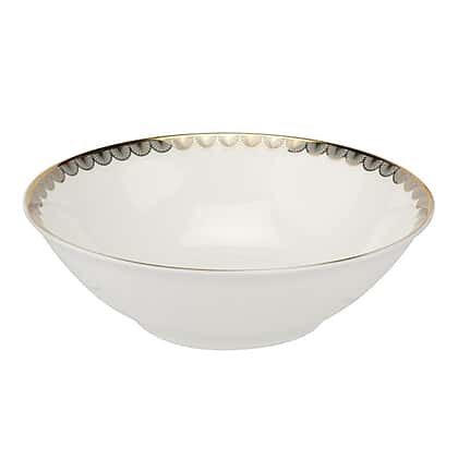 - REGAL APPEAL: Each bowl of the set is dressed on its border with a scalloped design in 22 carats of gold against the pristine white finish of the bowls