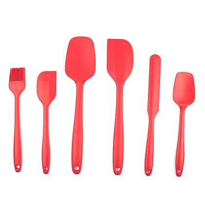 Set of 6 - Silicone Spatula (Includes 1xLarge Spatula, 1xSmall Spatula, 1xBig Spatula Spoon, 1xSmall Spatula Spoon, 1xJar Spatula & 1xBrush) - Red