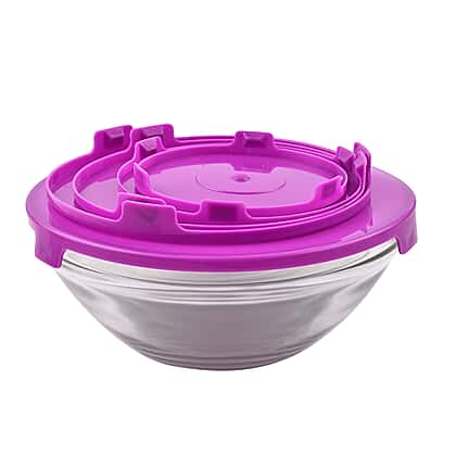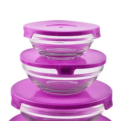 Microwave safe Dishwasher safe Suitable for food storage. These are easy to store nesting bowls with colour in Blue, Purple, Red, Green Bowl Resistant Glass Lid Materials that is heat resisitant.BPA Plastic Measurement: 18cm x 18cm x 10cm Number of Bowl: 5 Pieces Glass Bowl Set Includes: 170 mm with lid 140 mm with lid 125 mm with lid 105 mm with lid 90 mm with lid.