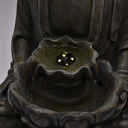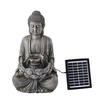 - Captivating solar Buddha with a lotus flower fountain and LED light
