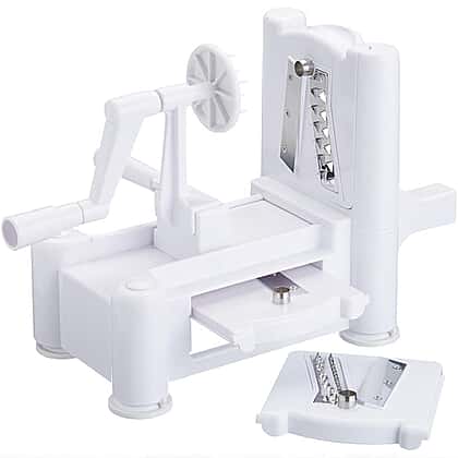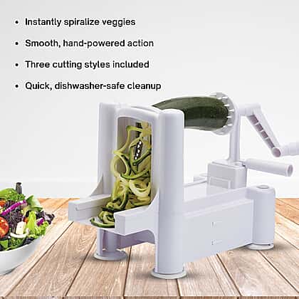 Spiralizer - Veg and Fruit - 3 Cutting Blades - Ribbons and Noodles - White