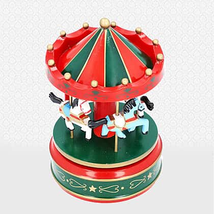 Stocking Filler- Handcrafted Merry-Go-Round Carousel with Wooden Horses Music Box (Size 11x18cm) - Red and Green