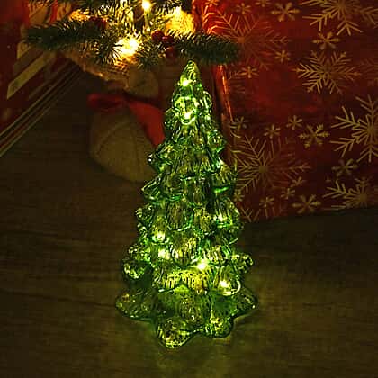 Tapered Glass LED Lighted Conical Christmas Tree With Electroplating Thread (Battery - CR2032X2, Incl.) - Green