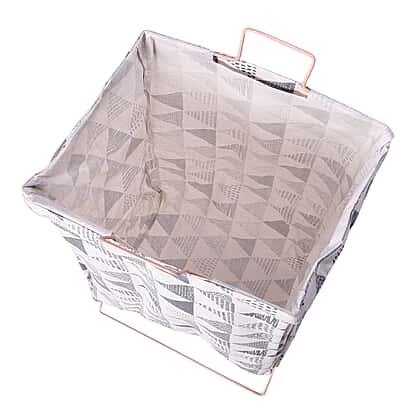 Triangular Pattern Grey and White Colour Folding Laundry Basket (48x26x25cm)
