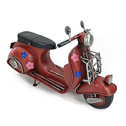 Vintage Miniature Moped Model Metal Scooter with Flower Details - Red