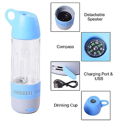 Water Bottle with Wireless Bluetooth Speaker in Blue (Capacity 400ml)
