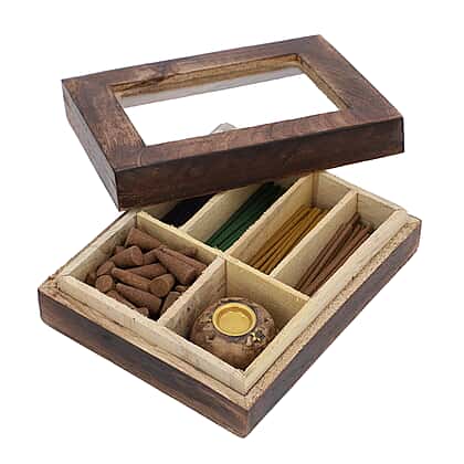 Wooden Incense Gift Set with (120) Incense Sticks, Incense Cones and Wooden Holder - Sahara Dusk Fragrance