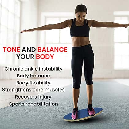 Fitness Wooden Wobble Board with Anti-Slip Surface- Blue