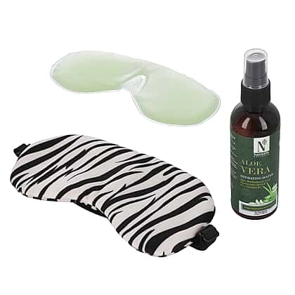 - CONTENTS: 1xAloe Vera Spray, 1xZebra Design Gel Based Eye Mask and 1xAloe Vera Gel Pack are contents of this set