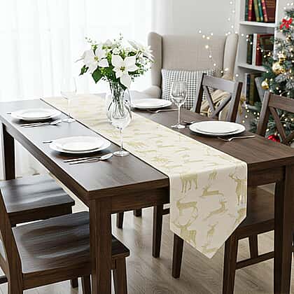 Infuse festive charm into your dining space with the Christmas Poinsettia Table Runner. Showcasing the timeless beauty of the poinsettia, this runner seamlessly blends tradition with contemporary flair. It's more than just a decorative piece; it's a conversation starter, ensuring every festive meal is set against a backdrop of elegance and warmth. Perfect for the holiday season, it complements your tableware and creates a heartwarming ambience.