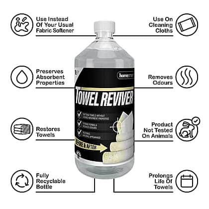 Revive your towels to their former glory with Home Smart Towel Reviver 1L. This specially formulated solution eliminates tough stains, odours and bacteria from your towels, leaving them feeling soft and fresh like new. With its fast-acting formula and easy-to-use pour cap, you can bring your tired and worn-out towels back to life in just one wash. So say goodbye to dingy, rough, and smelly towels, and say hello to a fresh, plush and rejuvenated feel with Home Smart Towel Reviver. This product is a must-have for any household and will make doing laundry a breeze.