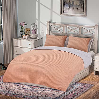 Available in a beautiful light peach colour, this 3 Piece Set comprising an extra warm Sherpa Duvet Cover with 2 Pillowcases is perfect for your home. This set is suitable for adding a cozy and warm touch to your bedroom decor while also providing a comfortable and relaxing sleep experience. The duvet cover features a soft and fluffy Sherpa fabric that feels luxurious against the skin and provides extra warmth during the colder months.