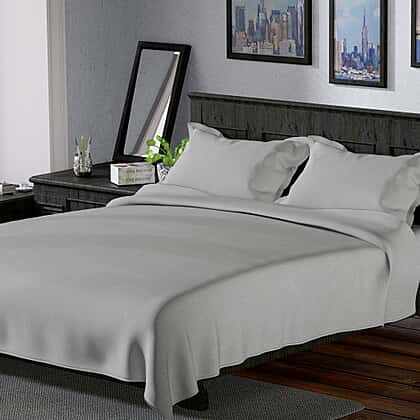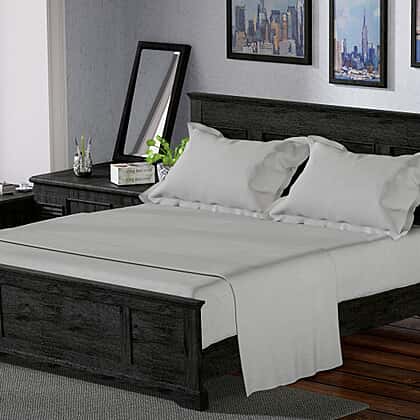 4 Piece Set - Cotton Flat Sheet Fitted Sheet and 2 Pillowcase - Grey