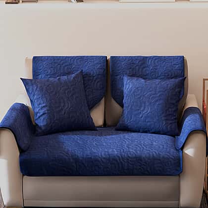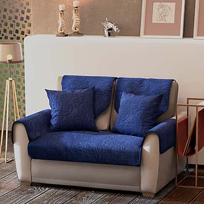 7 Piece Set - Double Sofa Cover (Size 119x75 Cm), 2 Back Cover (Size 90x60 Cm), 2 Cusion Cover (Size 45 Cm) and 2 Arm Cover (Size 52x45 Cm) - Teal Blue