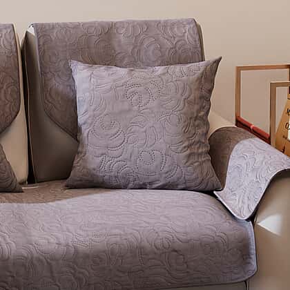 7 Piece Set - Ultrasonic Double Sofa Cover (Size 119x75 Cm), 2 Back Cover (Size 90x60 Cm), 2 Cusion Cover (Size 45 Cm) and 2 Arm Cover (Size 52x45 Cm) - Light Grey