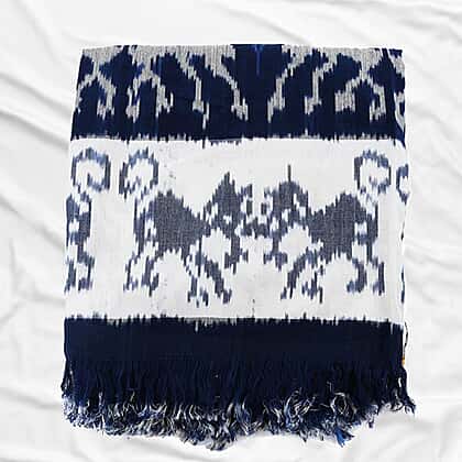 Bali Collection Tenun Throw in Animal Motif (Size 120X240Cm) - Navy & White