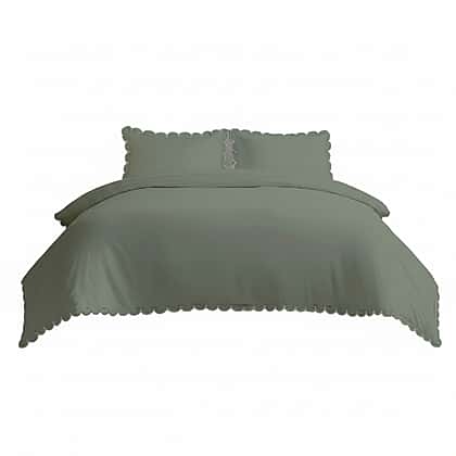 Bolongaro & Trevor Co Ltd - 100% Cotton Scallop Duvet Cover 3 Piece Set (Double) - Green