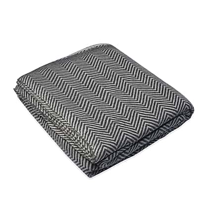 Close Out Deal- Cashmere Wool Wave Design Throw Blanket (Size 260x140 Cm) - Dark Grey