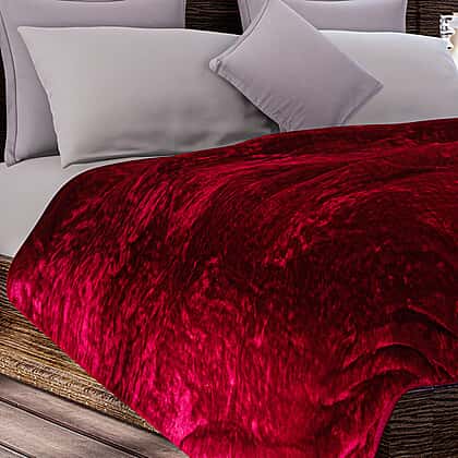 Closeout Deal Luxury Faux Fur Blanket 400 GSM (Size 150 x200 cm) - Red Wine