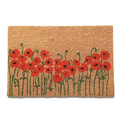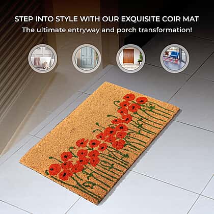 Coir Flower Rug and Door Mat (Size 40x1 cm) - Brown & Red