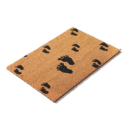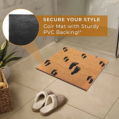 Feet Design Backed Coir Natural Printed Rug and Door Mat (Size 60x40 cm) - Brown - Black