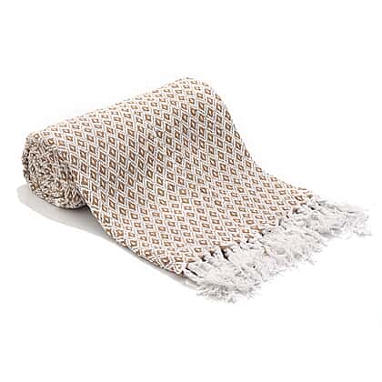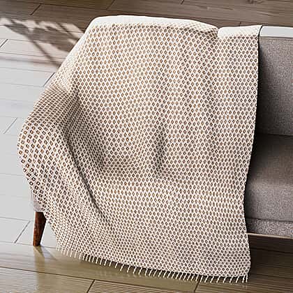 Cotton Chevron Patterned Throw Blanket (Size 170x130 cm) - Brown