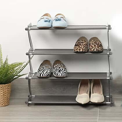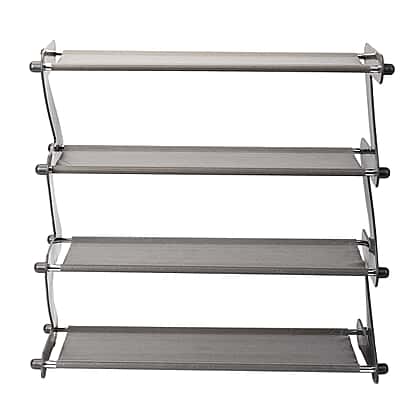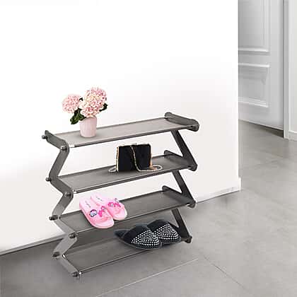 Collapsible and Hand-Assembled 4 Layer Z-Shaped Shoe Rack - Made with Stainless Steel - Grey (Size: 12.2 x 4.8 inches)