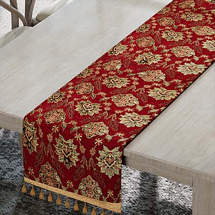 High Quality Turkish Fine Detail Damask Tasptry Table Runner (Size 175x49 cm) - Red