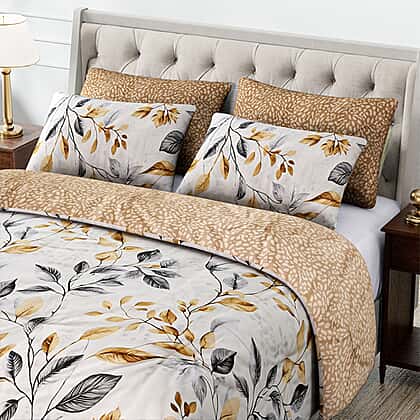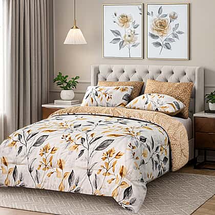Homesmart 3 Piece Floral & Leaf Print Comforter Set Inc. 1 Comforter & 2 Pillowcases