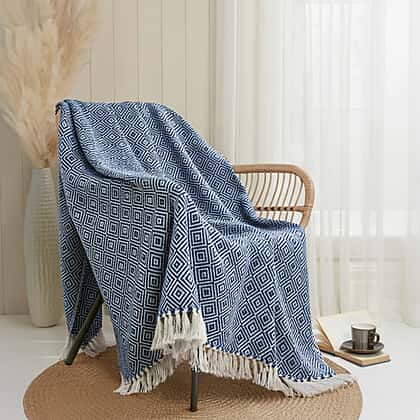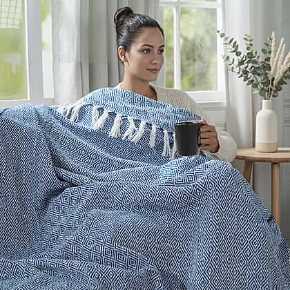 Hush Heaven 100% Soft Cotton Diamond Weaved Throw Blanket (200x150cm) - Light Blue