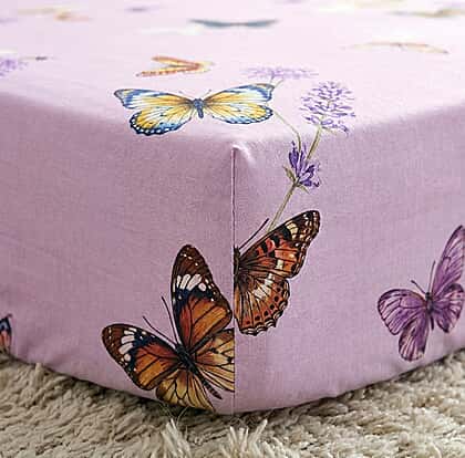 Add a soft and decorative touch to your bedroom with this LA Marey Signature mulberry silk patterned sheet, designed to combine comfort with a playful yet refined finish. The gentle pink base is enhanced with butterfly motifs, adding movement and visual interest to the overall design. Made from mulberry silk, the sheet offers a smooth, lightweight feel with a natural sheen that enhances both colour and detail. The fabric drapes neatly over the bed, while the printed pattern introduces a lively yet balanced look without overwhelming the space. Its breathable nature supports everyday comfort across seasons. Both functional and visually distinctive, this sheet pairs well with a variety of bedding styles, adding a fresh and decorative touch to your bedroom.