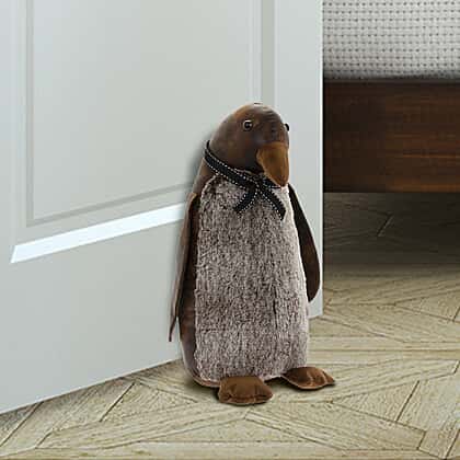 Lesser & Pavey Faux Leather Penguin Doorstop in Brown (38X16 CM)
