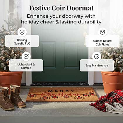 Merry Christmas Bleached Print Coir Doormat (60 x 40 cm) - Christmas