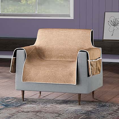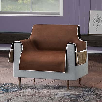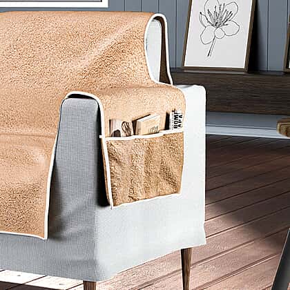 This stylish and classic brown reversible pattern suede bonded with a sherpa sofa cover will protect your sofa and transform the old sofa into a stunning centrepiece of your living room. This cover is made from 100% polyester with suede fabric offering a smooth surface, good texture and comfortable touch. It will protect your sofa or couch from wear and tear, spills, dust and accidents. It has six pockets with three on each side to safely keep your mobile phone, remote and glasses. Bring home this reversible sofa cover and give a modern touch to your space.
