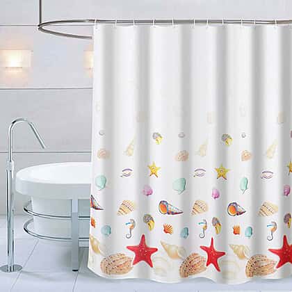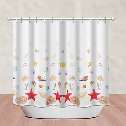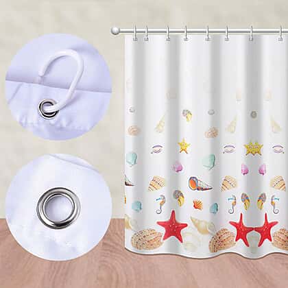 Sea-inspired Printed Waterproof Shower Curtains (Size 180x180cm) with 12 Hooks - White