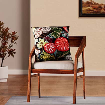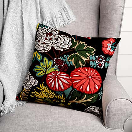 Set of 2 - Abstract Flower and Leaf Pattern Pillow Case and Cover (Size 45 cm) - Black