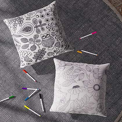 Set of 2 - DIY Grafitti Colouring Pillow Cover with 8 Water Colour Pens (Size 44 Cm)