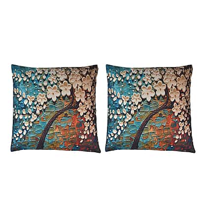 Set of 2 - Floral Tree Pattern Cushion Covers (Size 45 Cm) - Multi