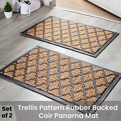Upgrade your home's entrance with this Set of 2 Rubber Trellis Door Mats. Made from durable, weather-resistant rubber, these mats are perfect for high-traffic areas and provide excellent traction to prevent slips and falls. The trellis design adds a touch of elegance to your doorstep and effectively scrapes away dirt and debris from shoes, keeping your home clean and tidy. Easy to clean and maintain, these mats are a must-have for any home. Enhance your home's curb appeal and protect your floors with this Set of 2 Rubber Trellis Door Mats.